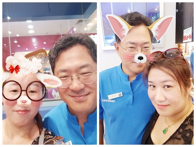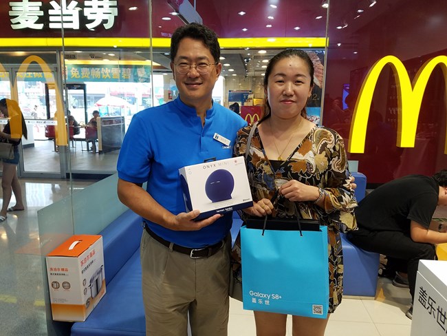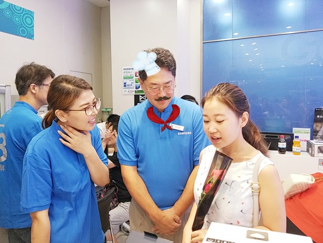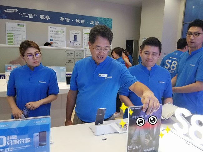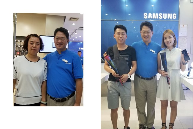 一位购买了三星Galaxy S8顾客有幸与权桂贤先生合影留念。