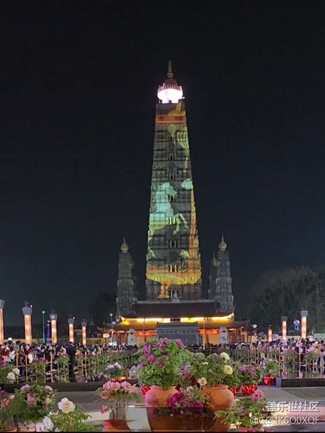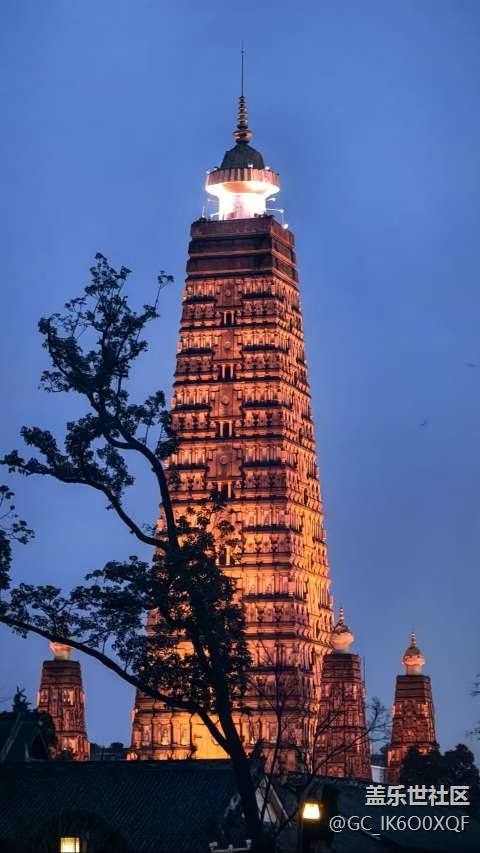 - 四川省彭州市古龙兴寺的漂亮夜景。