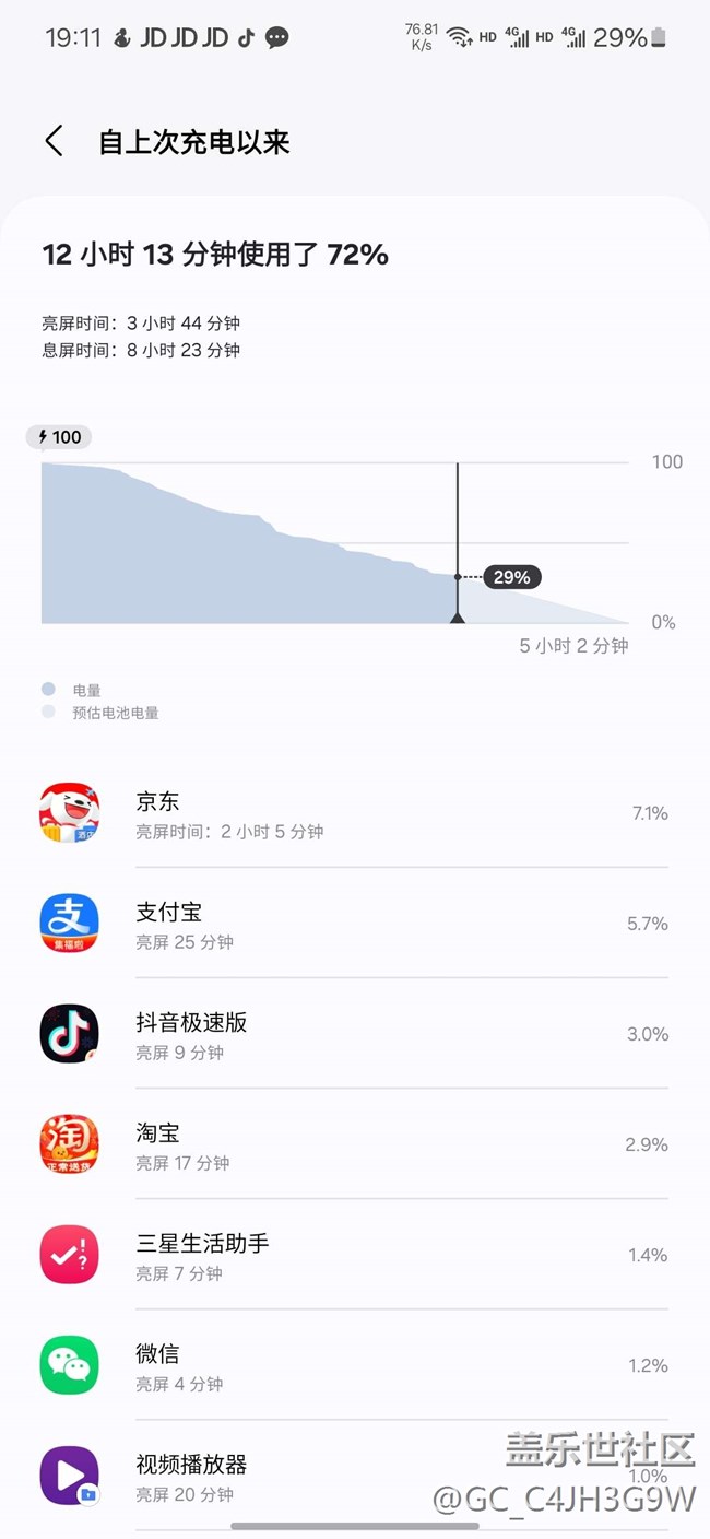 - 待机8个半小时亮屏3个多小时72%的耗电量也还可以