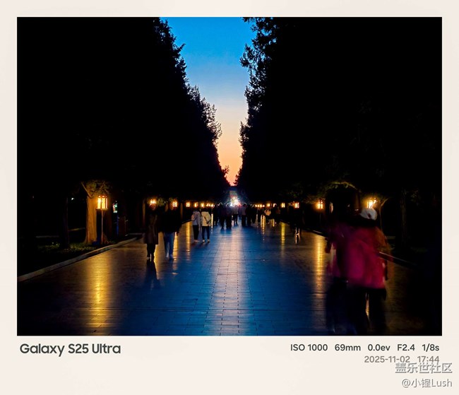- 与三星社区的小伙伴一起相约景山公园,从午后开始,一路按照既定路线开启“登高看京城”的影像体验之旅。我们在山下集合后,从山道拾级而上,沿途试拍风景、建筑、人像。抵达万春亭时,北京的天空还带着些微灰感,但S25 Ultra的长焦依旧给力:远眺故宫时,长焦轻松把金瓦红墙拉到眼前,细节表现非常惊喜。广角端拍亭子结构也非常稳,构图透气,不变形。到了寿皇殿, S25 系列的照片重录在照片后期时非常方便,一键就能让照片更“高级”。而即圈即搜功能在路上也派上用场,看到不认识的植物,手机一扫就能精准识别,让拍照之外又多了一点探索感。在万春亭大家一起交流拍摄技巧,互拍人像、对比样张,也体验了 S25 Ultra
