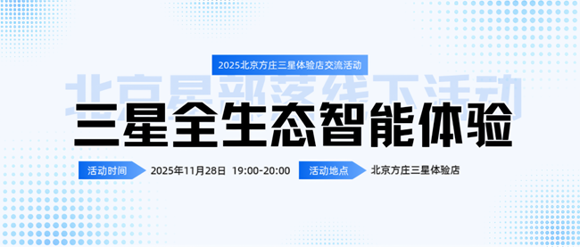 - 2025年12月北京星部落线上摄影活动 【活动主题】:【星岁映像】 【主题简介】:12月,把最后一格快门按下,一整年的光被收进“星”里。“星岁映像”面向所有星粉,汇总2025 年用三星设备拍摄的挚爱瞬间:晨曦、烟火、人海、微距、城市霓虹或山野星轨,只要是你的视角,只要被三星镜头铭记。这就像一部可触摸的年历、一场可走进的展览,让每一帧微光,在岁末集体亮起,映成属于我们的 2025,用一次回望,把明年照亮。通过拍摄身边的事物,展现三星手机人像、风景、夜景,长焦等拍照品质。 【参与活动规则】: 即日起,在北京星部落同城活动板块发布主题摄影活动照片帖参