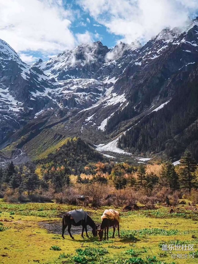 - 当雪山的纯白与秋叶的斑斓交织,滇藏秘境的诗意便在此刻尽显。 草甸上,驮着行囊的骡马悠然食草,远处雪山云雾缥缈,似是天地间的留白;藏式村落隐于彩林深处,背后的雪山巍峨如巨人,每一处角落都藏着不被惊扰的美;经幡旁的草地上,马儿低头觅食,秋阳倾泻,画面满是静谧的烟火气。 徒步时,金黄的落叶松铺满山路,行人穿梭其中,朝着雪山深处坚定前行;抵达碧蓝湖泊,所有疲惫都成了对自然的惊叹,只想张开双臂,与山水来一场深情相拥。林间小松鼠在树皮上探头,为旅程添了几分灵动。 沿着步道向雪山走去,经幡飘动,彩林尽染,每一步都是与极致风光的对话。若你也憧憬这样的秘境,不妨奔赴此地,让雪山的风、秋叶的色,在你心间烙下一段关