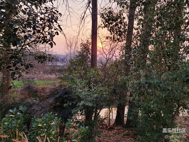 - 在山里看到夕阳落山,风景果然不一样。