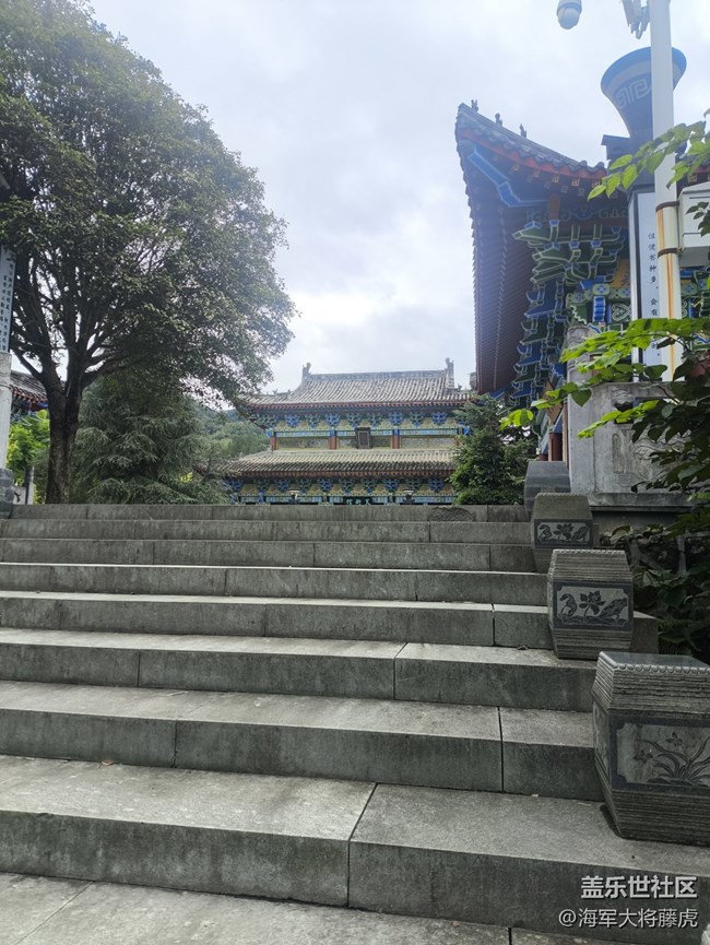 - 秋末的山,是浓淡恰好的画 —— 林色还裹着深绿,风里却渗了些凉,连建筑的檐角都浸着清润的秋意。沿山径走,先是撞见草坪上的扇面石刻,字里藏着山的故事,熊猫摆件又添了几分软趣;转个弯,木屋的露台支着遮阳伞,木桌木椅等着一场闲适的茶歇,山风掠过就是最自然的背景音。再往里,古建的彩绘还亮着,蓝绿与朱红叠在檐下,配着阶前的松树,是岁月沉淀的静美;拾级而上,石阶漫着潮气,远处的殿宇藏在林里,连空气都慢了下来。最难忘是那条向山深处去的路,两侧林木密不透风,绿意裹着秋的薄寒,走进去就像闯进了时光的褶皱里。秋末的山从不是萧瑟的,是深绿里藏着的暖,是古建与草木的相融,是每一步都能接住的、不慌不忙的温柔。