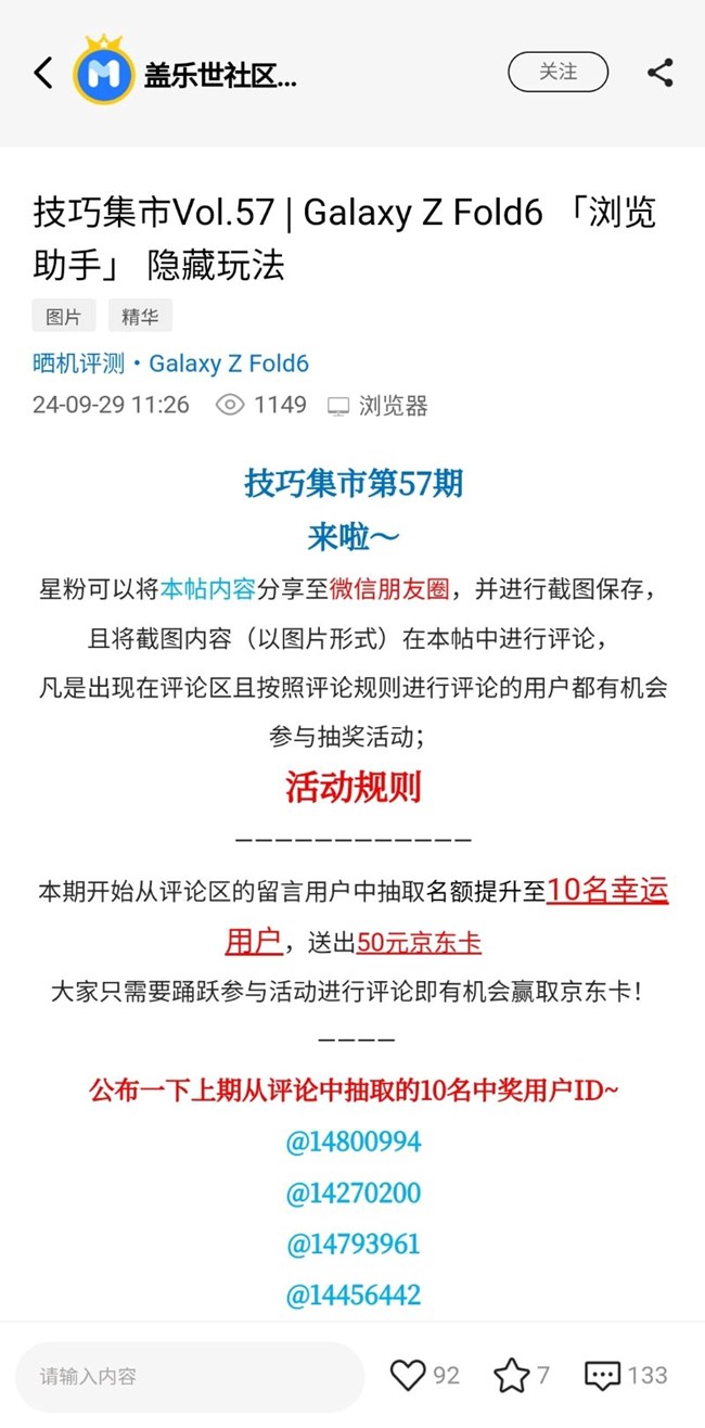 【开奖】晒Bixby语句 赢百元京东卡