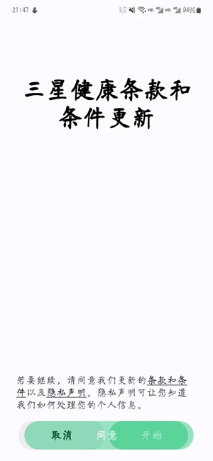 三星健康条款更新后无法点击同意或取消,无法进入软件