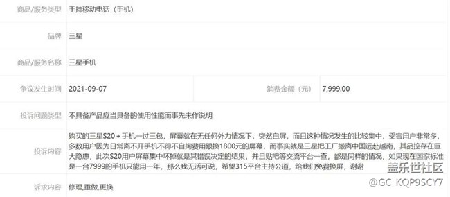 三星白屏问题售后维权
