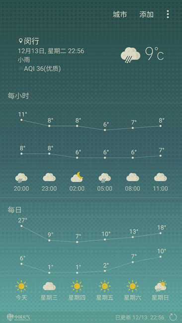 我的也是,明显BuG,上面一行温度是对的,下面一行是错的,今天最高温度14度,显示27