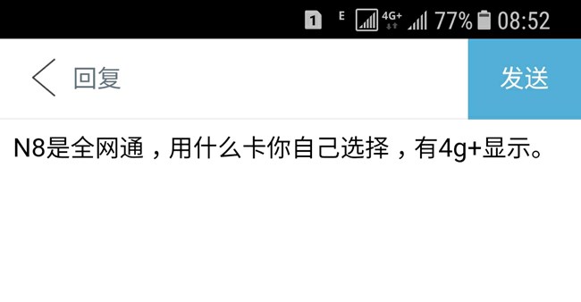 N8是全网通,用什么卡你自己选择,有4g+显示。