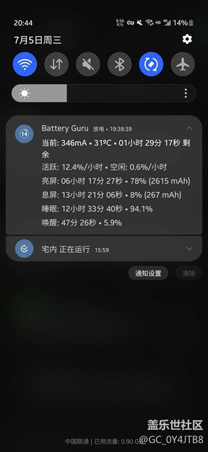 亮屏一小时,耗电量17%