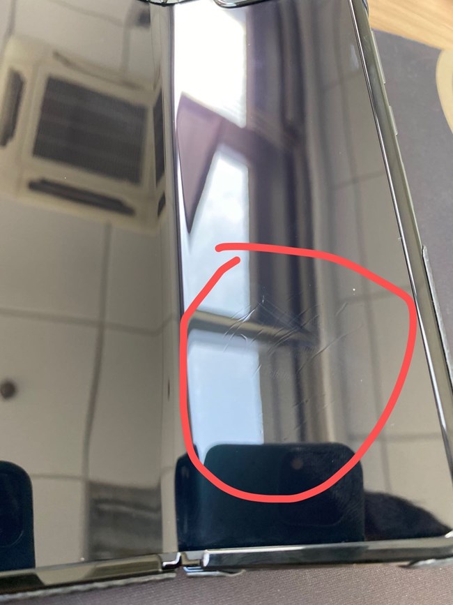 三星galaxy fold,用了半天 ,打了一把王者荣耀,屏幕全部都是皱巴巴的纹路。