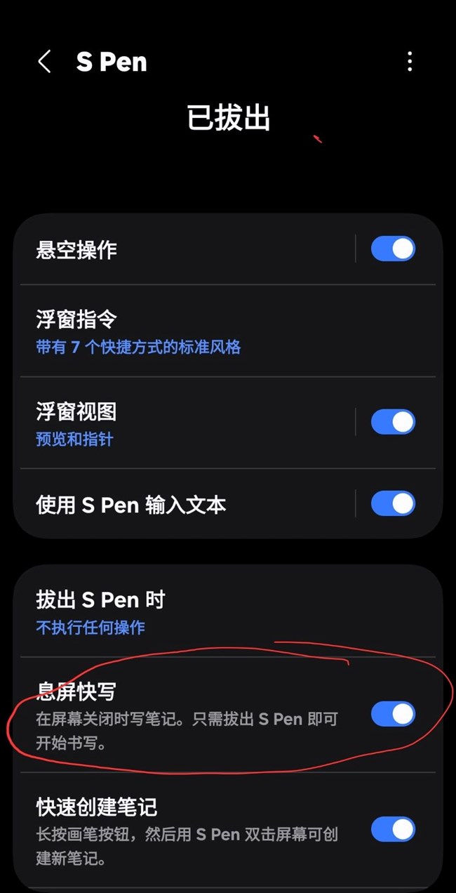 要设置打开息屏快写