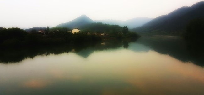 宣城桃花潭的晚霞与晨雾