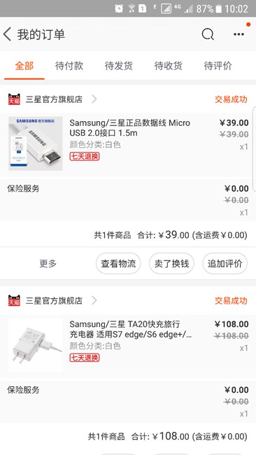 三星天猫旗舰店有 39一条 一套是108