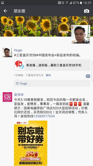 【奖品已邮寄】看直播送祝福,赢取三星盖乐世S8手机