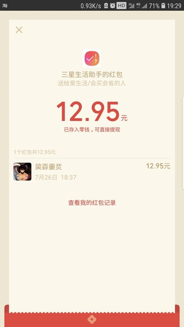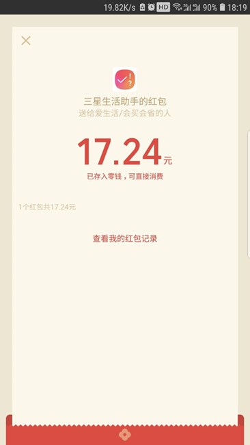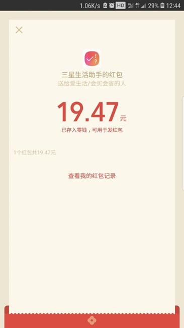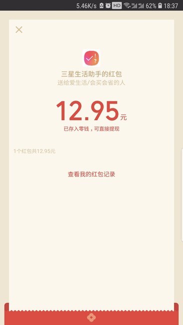 给力哦,30多块得了快113元红包