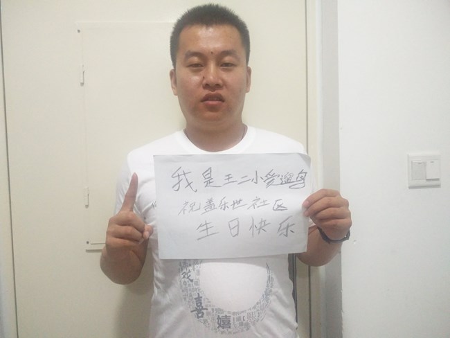 我是王二小爱遛鸟 祝社区一岁快乐 社区是我家,我也爱大家!