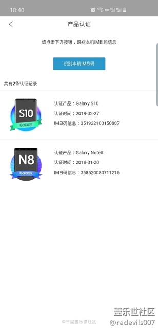 认证三星Galaxy S10系列新品IMEI号 奖励2000星币