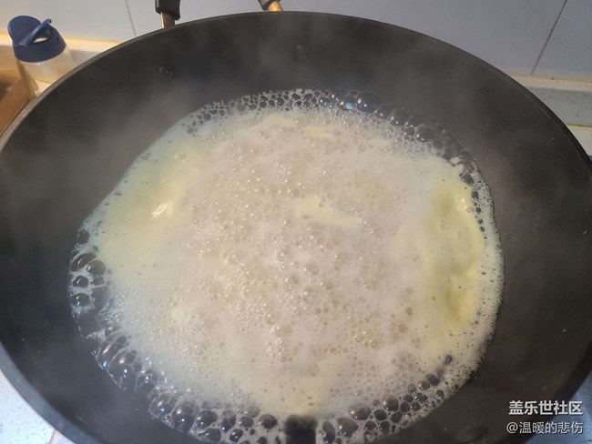 锅中少于油下咸鸭蛋,煸炒出香味