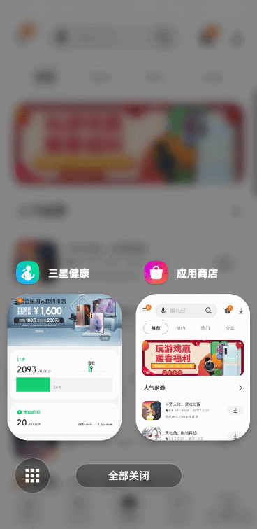 它的强大之处,一方面在于可以在任一应用页面打开的基础上打开后台多任务界面(One UI2.5的Task changer多任务界面调用逻辑舒适,可以不退出原应用界面,在原应用界面上调出多任务界面)。