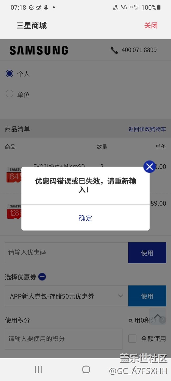 三星商城赠送的新人优惠券既然用不了还发的什么劲? 图片