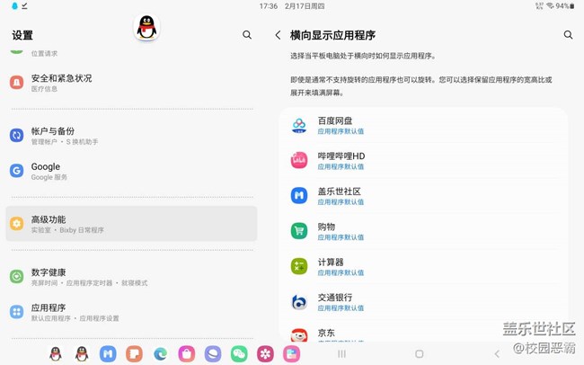 关于tab s7软件横屏