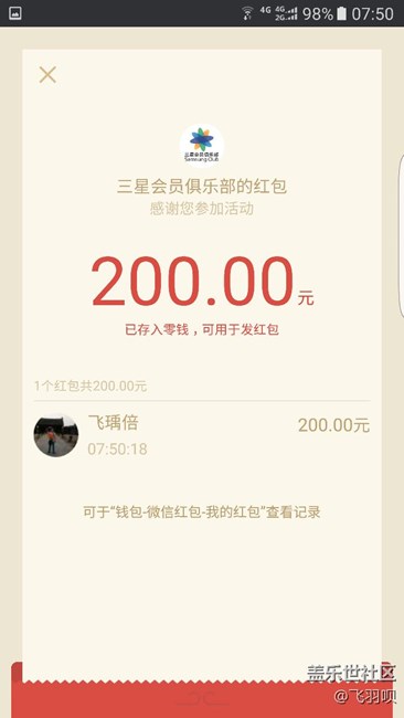 帖子名称: 三星红包到账。