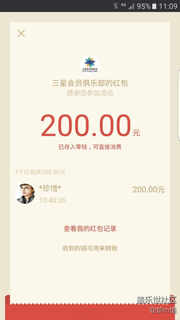 今天十点多就收到三星智付的红包了,你们收到了吗?