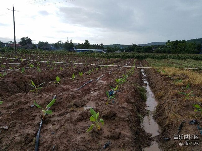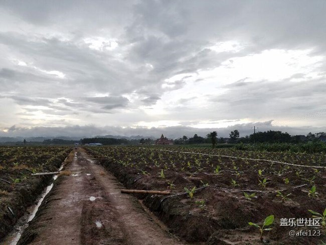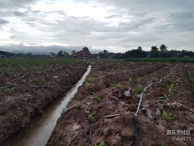 北方的朋友们 你们见过香蕉是怎样种植的吗 不要看这小香蕉苗子这么小 在我们祖国的最南端种植香蕉 从种下小苗到收获果实只要一年时间就行了 黄昏雨中拍的照 三星s7e还是很给力的 旁边的和尚庙都开灯了还照得这么清晰。