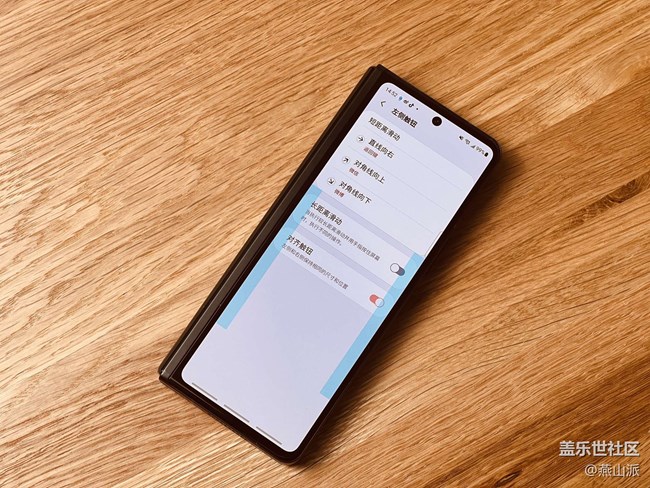 屏幕左右两侧手势操作都能自定义,而且每一边根据直线向内、对角线向上、对角线向下,不同手势可以设置不同对应功能。比如我的三星Z Fold3设置的是左侧边向内返回,对角线向上打开微信,对角线向下打开微博,右边向内同样是返回,因为返回操作使用率最高,对角线向上是打开百度,对角线向下是打开相机。这样的不管在什么页面下,轻轻一滑,就能打开对应的APP,而且还能通过快捷手势在不同APP间快捷切换。当你聊着微信,想要查资料,在右侧对角线向上一滑就能打开百度搜索,查完资料复制后,屏幕左侧对角线向上一滑又能快速打开微信粘贴资料。便捷度确实比一般安卓手机的全屏手势好用太多,尤其对于Z Fold3这种折叠屏手机来说,交互效率大大提升,对于三星老用户来说,这个功能简直也是yyds。