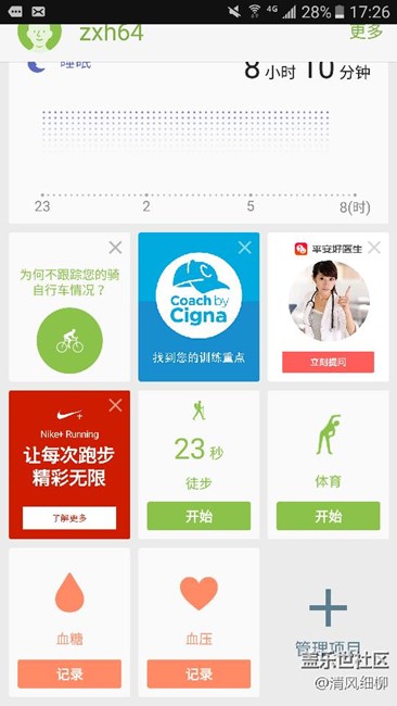 其实,S健康远不止徒步一项,各种运行模式都可以设定并记录。还有记录心跳、血压、饮食计划等十几项,实在是贴心的小宝贝!