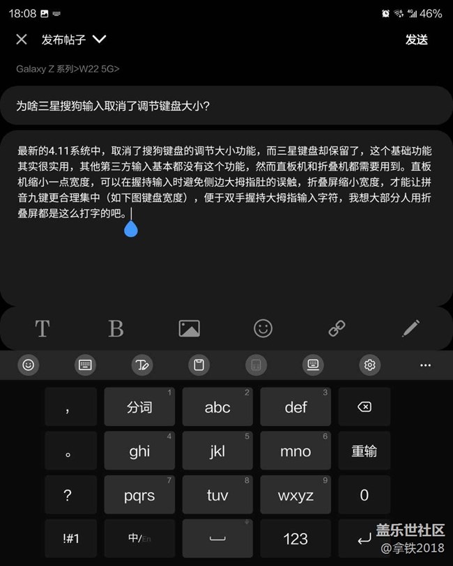 帖子名称 为啥三星搜狗输入取消了调节键盘大小?