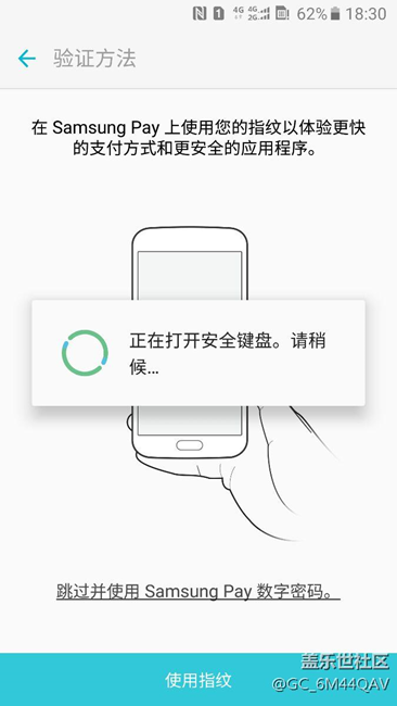 三星S6电信版在使用Pay的时候在打开安全键盘时一直转