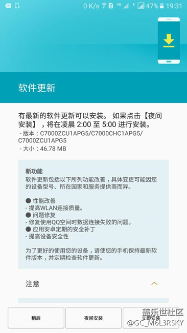 终于有WiFi 问题的更新,APG5赶紧去升级,试试三星这次升级是否靠谱。