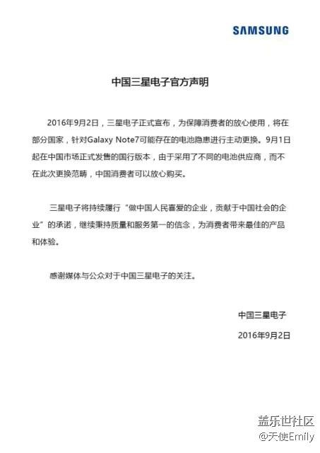 经过对中国区已出货和库存Note7信息与生产日志核查,国行Note7不涉及电池问题。