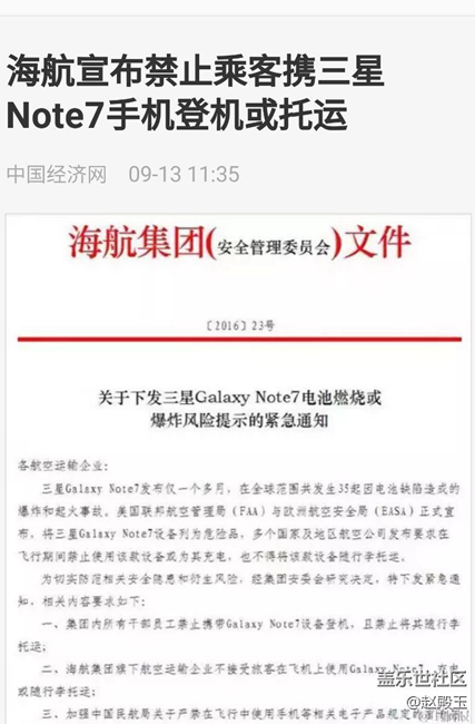 帖子标题: 海航禁止Note7登机与托运