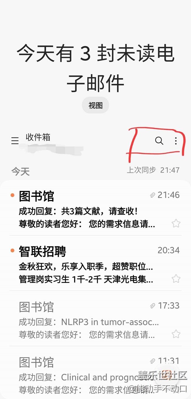 能不能在红框位置添加一个刷新按钮,每次打开都需要下滑刷新,容易误触点进邮件详情,再退出刷新实在太麻烦了