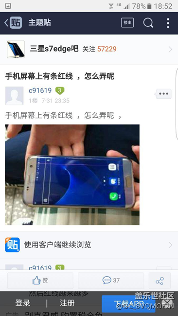 s7edge 屏幕右边有红色线,, 图片