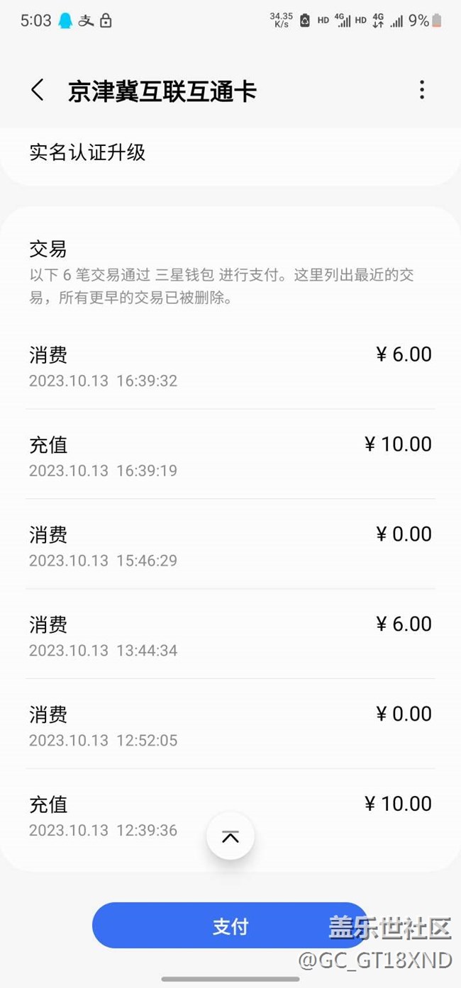 在三星钱包里面充值交通卡,钱付过去了,但是卡里没到账 图片