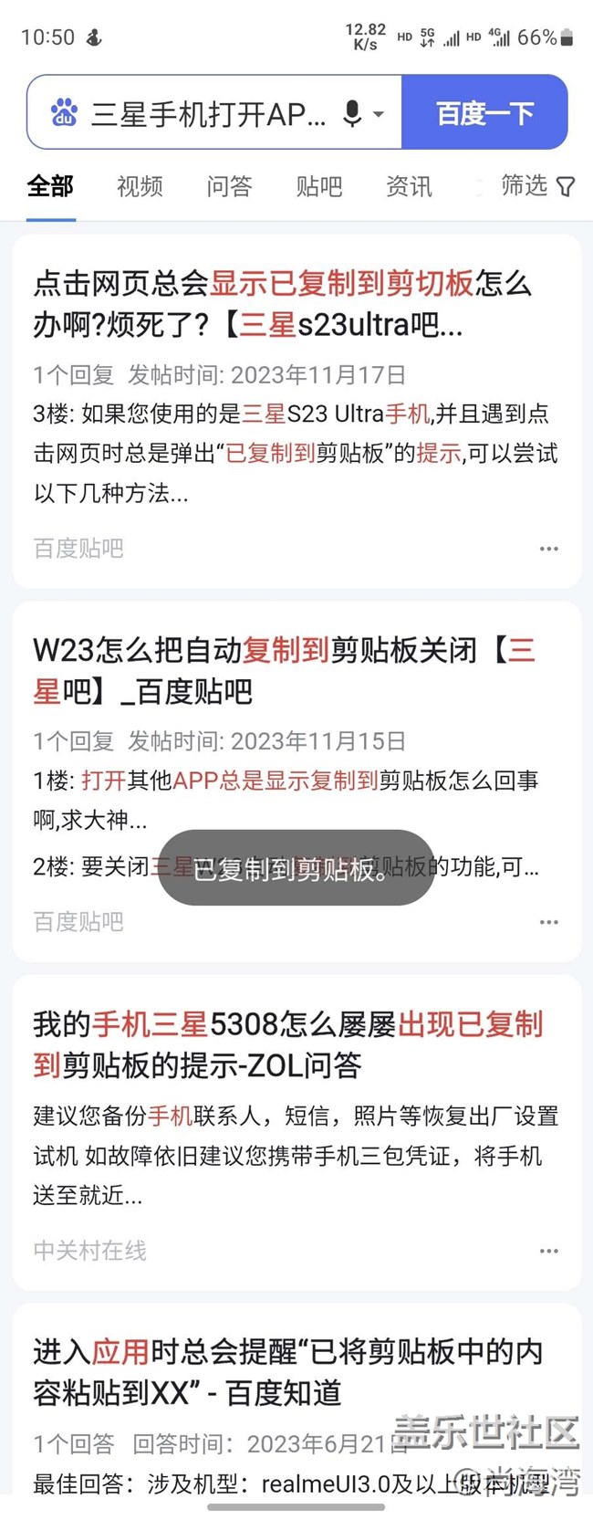 三星W23打开APP总是显示已复制到剪切板 图片