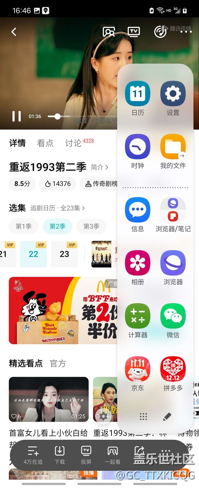 腾讯视频横屏模式没有侧屏幕面板,消失了! 图片