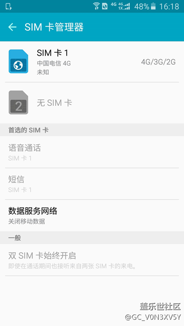 刚买一张电信4G号码卡,Galaxy A5100的SIM卡管理界面下卡号未知(如下图),上一张电信4G号码卡是正常显示号码的。新的电信卡是刚在电信营业厅补的,刚买这个卡的时候出现SIM卡管理界面下卡号未知这个问题,我以为是卡的问题就去补了一张,没想到补的卡也这样且同一卡槽上移动的号码就可以读出(手边只有一张移动卡)。目前只发现偶尔会影响上网速度慢或在使用微信的时候提示无法连接到服务器。
