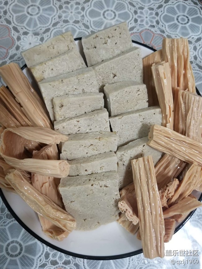 自己冻得豆腐,泡发的腐竹。