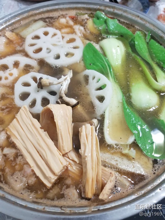 配菜有油菜、蘑菇、自切藕片。