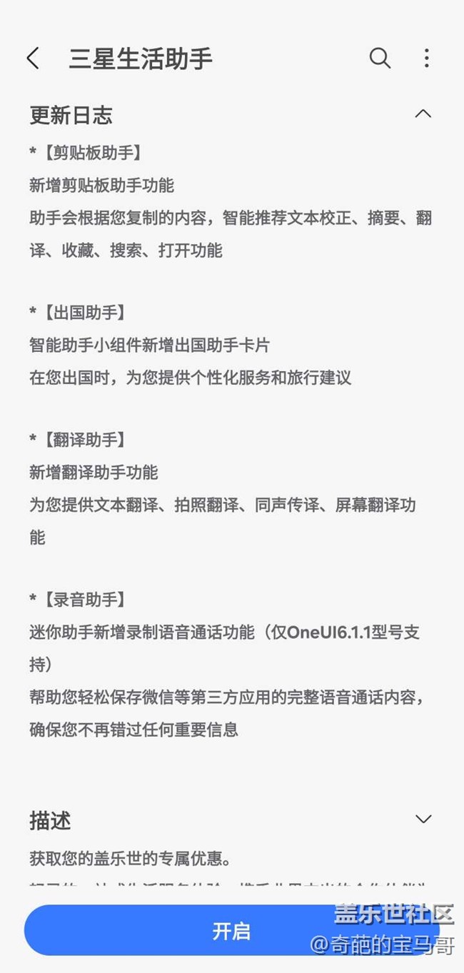 刚刚热更新了“三星生活助手”的ai功能。 图片