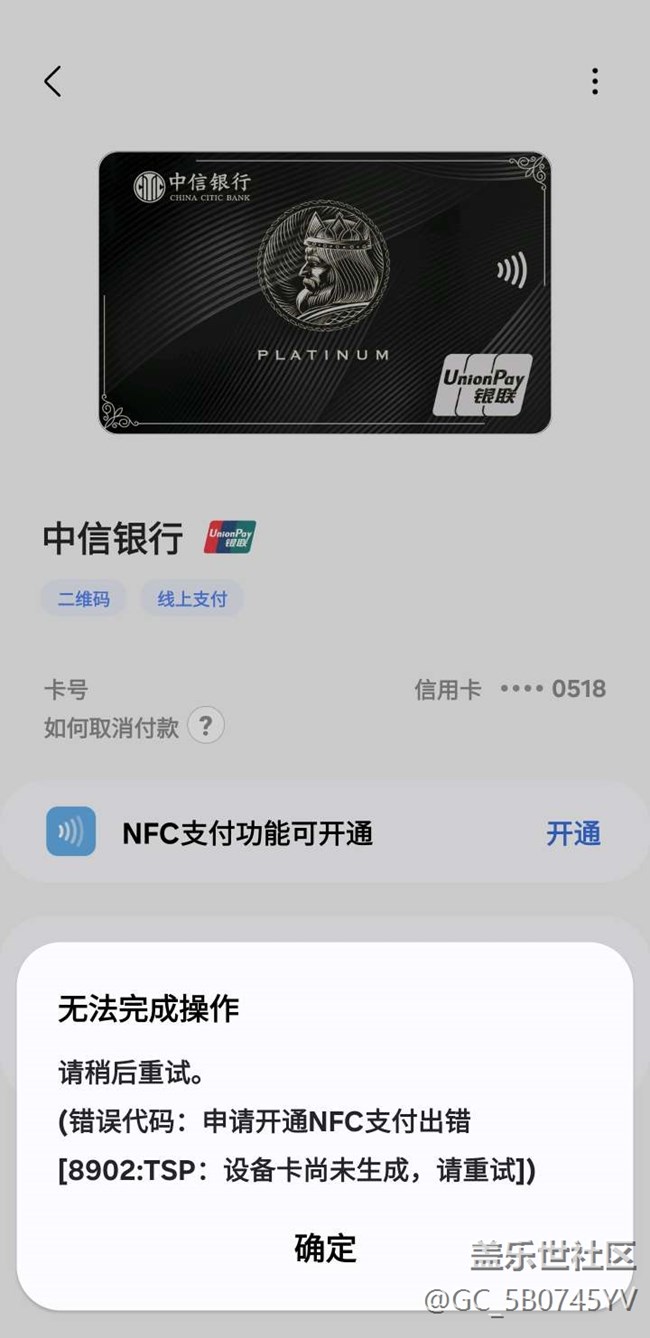 中信银行报错未生成卡片 图片
