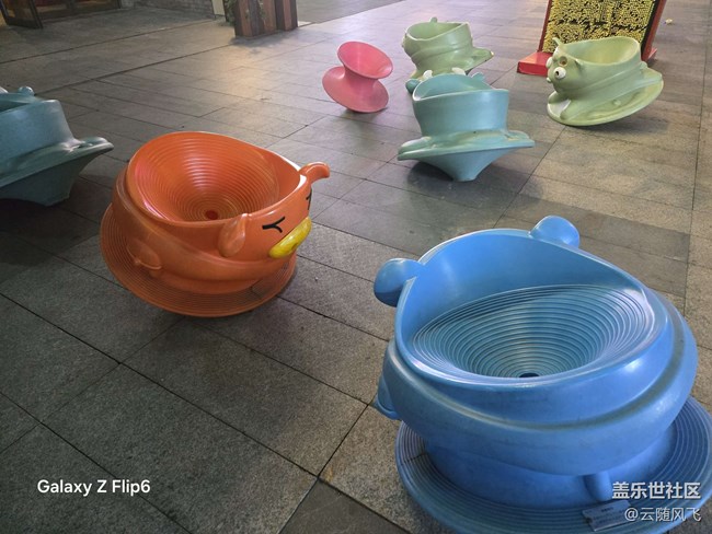 出来转一圈,尝试着拍一些照片。五颜六色的转转座椅,以及不知道还叫什么名字的各种玩具,都存进了我的手机相册。