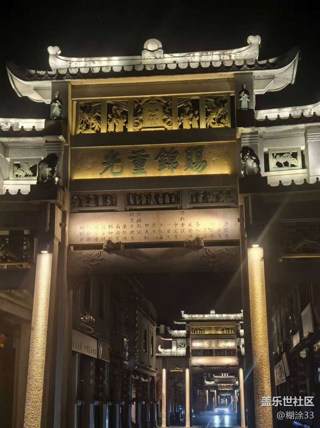 走过广济门,厚重的砖石承载着千年故事,城楼上的灯火,映着“东为万春”的牌匾,仿佛能看见古时的繁华过往。牌坊街的一座座牌坊,“吴楚重镇”“赐锦重光” ,在夜色里散发着柔光,每一道雕刻、每一个字迹,都是历史的注脚,诉说着先辈的荣耀与风骨。