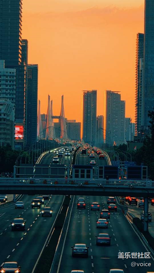 【晚风与霓虹的交响】下班途中的晚霞 图片
