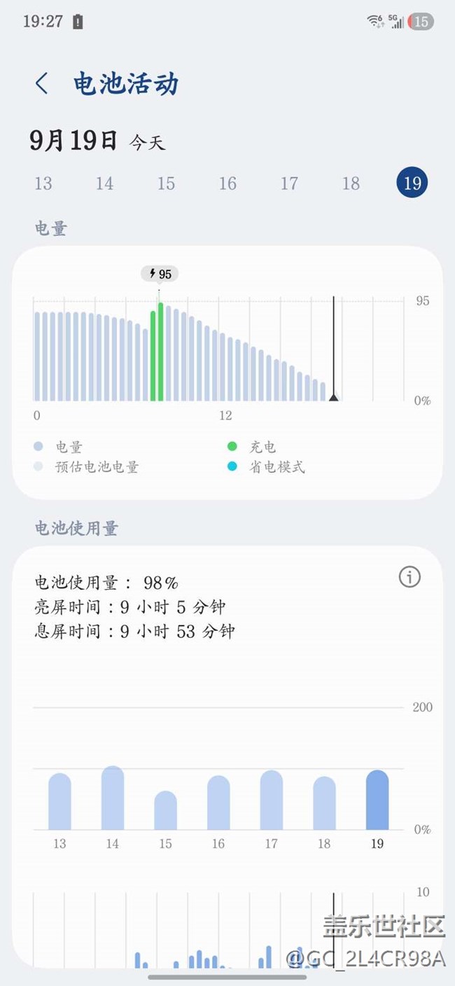 今天早上升的8,今天的电池使用,没玩游戏就看视频,股票,电池充电还只充百分之95